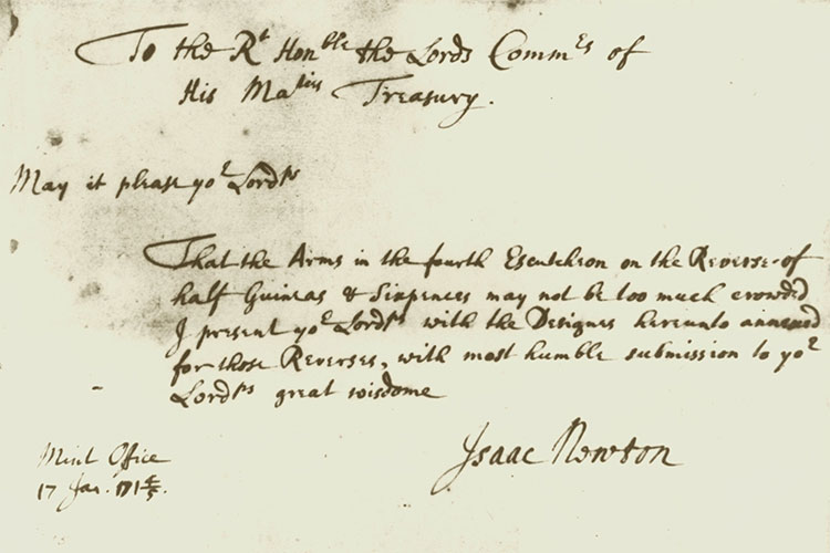 In 1696, Sir Isaac Newton moved from his post at Cambridge University to London to first become the Warden of The Royal Mint, and three years later, the Master of the Mint.