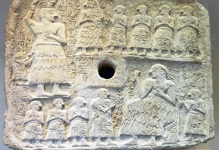 Votive relief of Ur-Nanshe, king of Lagash, with his sons and dignitaries. Limestone, Early Dynastic III (2550–2500 BC)