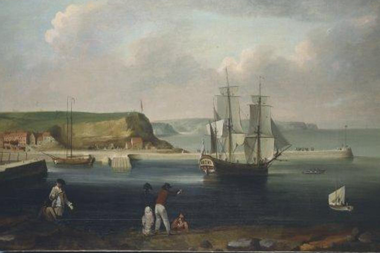 Earl of Pembroke, later HMS Endeavour, leaving Whitby Harbour in 1768. Painted in 1790 by Thomas Luny.