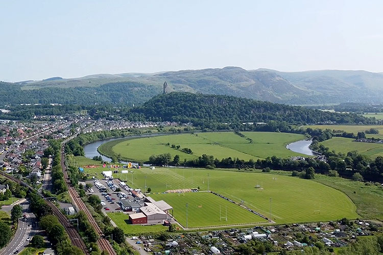 Site of the Battle of Stirling Bridge, showing the meandering River Forth which played a crucial role in the Scots’ victory. (The Wallace Monument can be seen in the background, atop the hill where the Scottish forces had gathered.