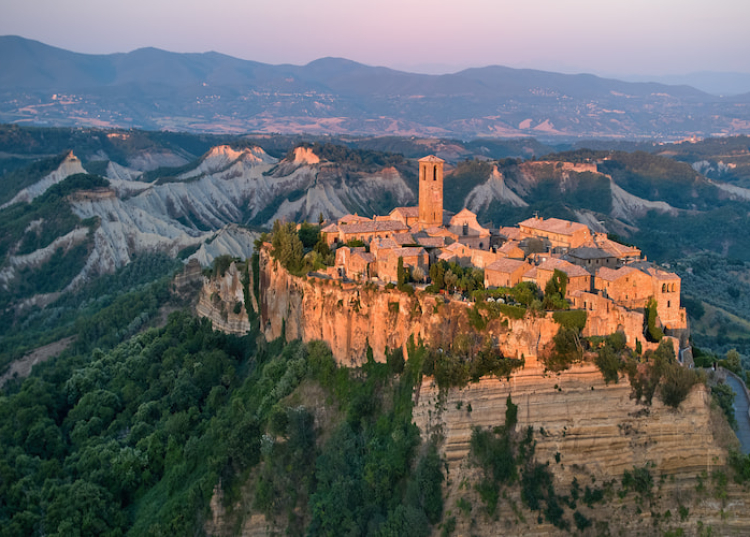 Civita di Bagnoregio in Italy is a stunning example of a medieval city left relatively untouched by modernity. Known as ‘Il paese che muore’ – the dying town – Civita di Bagnoregio sits atop a rocky outcrop that stands between two valleys.
