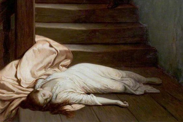 The Death of Amy Robsart, as imagined by Victorian artist William Frederick Yeames, 1877