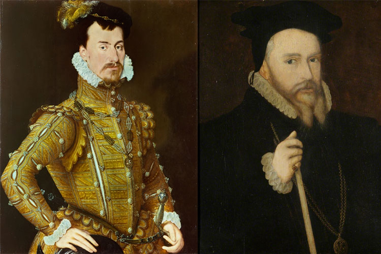 Left: Robert Dudley, c. 1560; Right: Portrait of William Cecil, c. after 1570