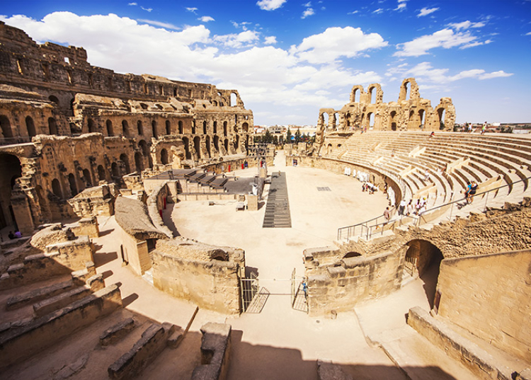 Constructed by the Emperor Gordian between 230 and 238 AD, El Jem Amphitheatre was vast and able to accommodate up to 35,000 spectators. At 162 metres long and 118 metres wide, the El Jem Amphitheatre is the largest of its kind in North Africa.