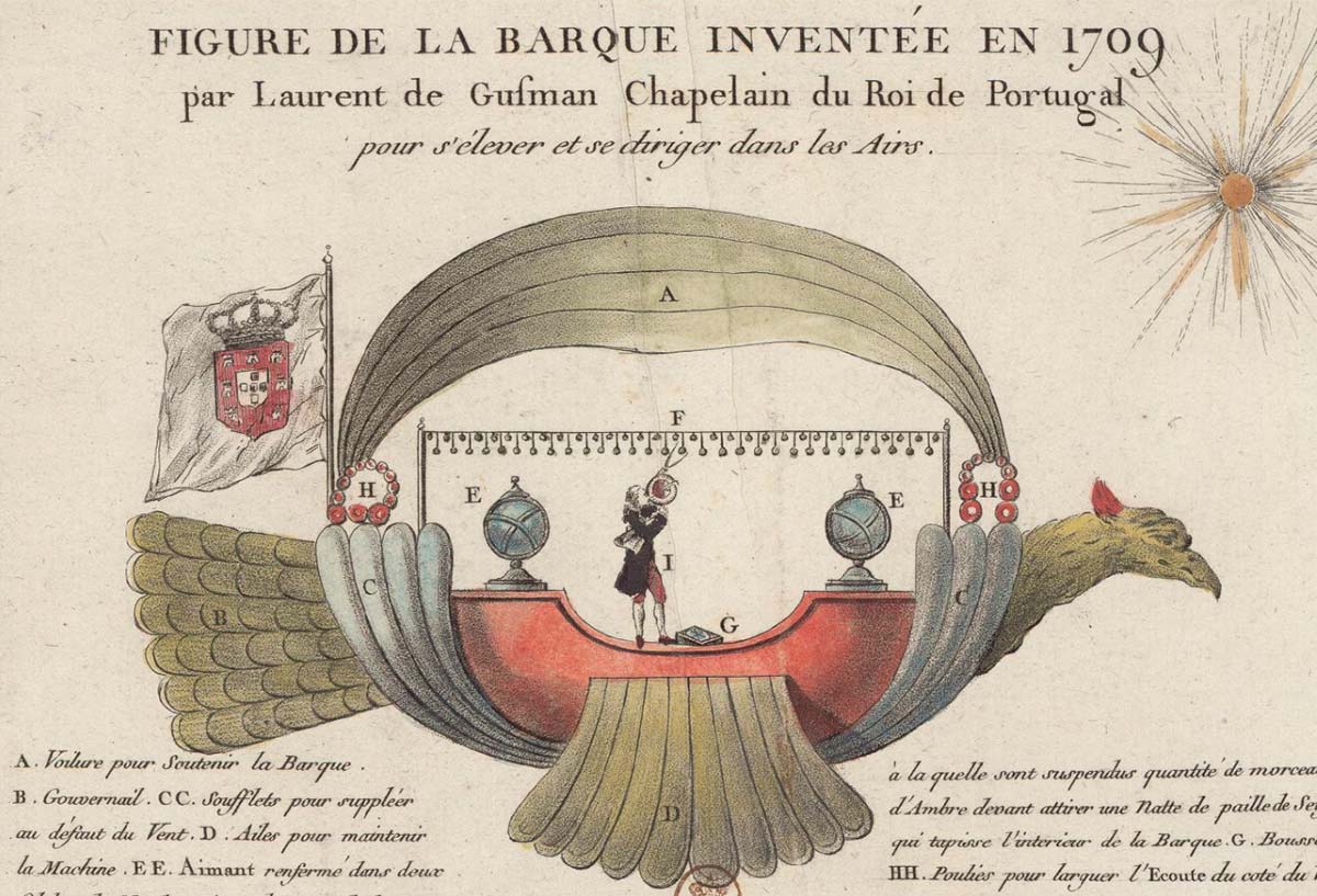 In 1709, Bartolomeu Lourenço de Gusmão, a Brazilian-born Portuguese priest turned aeronautical innovator, propelled a small balloon made of paper about four meters into the air, using combustion that filled the balloon with hot air. This design could be said to prefigure the ballooning technology of the Montgolfier Brothers, who are often hailed as having performed history’s first hot air balloon flight – some 74 years after de Gusmão’s balloon experiment.