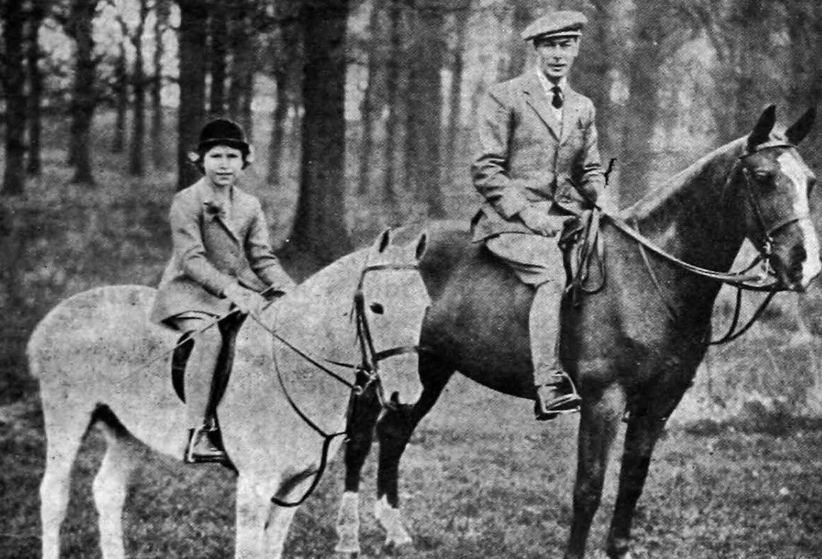 King George VI and Princess Elizabeth on horseback, 1937. Elizabeth loved horses and took a keen interest in them throughout her life.