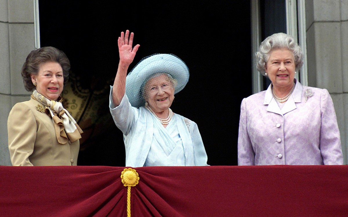 Princess Margaret, Queen Elizabeth, The Queen Mother and Queen Elizabeth II on the balcony of Buckingham Palace during the celebration for the Queen Mother’s 100th birthday on 4 August 2000.