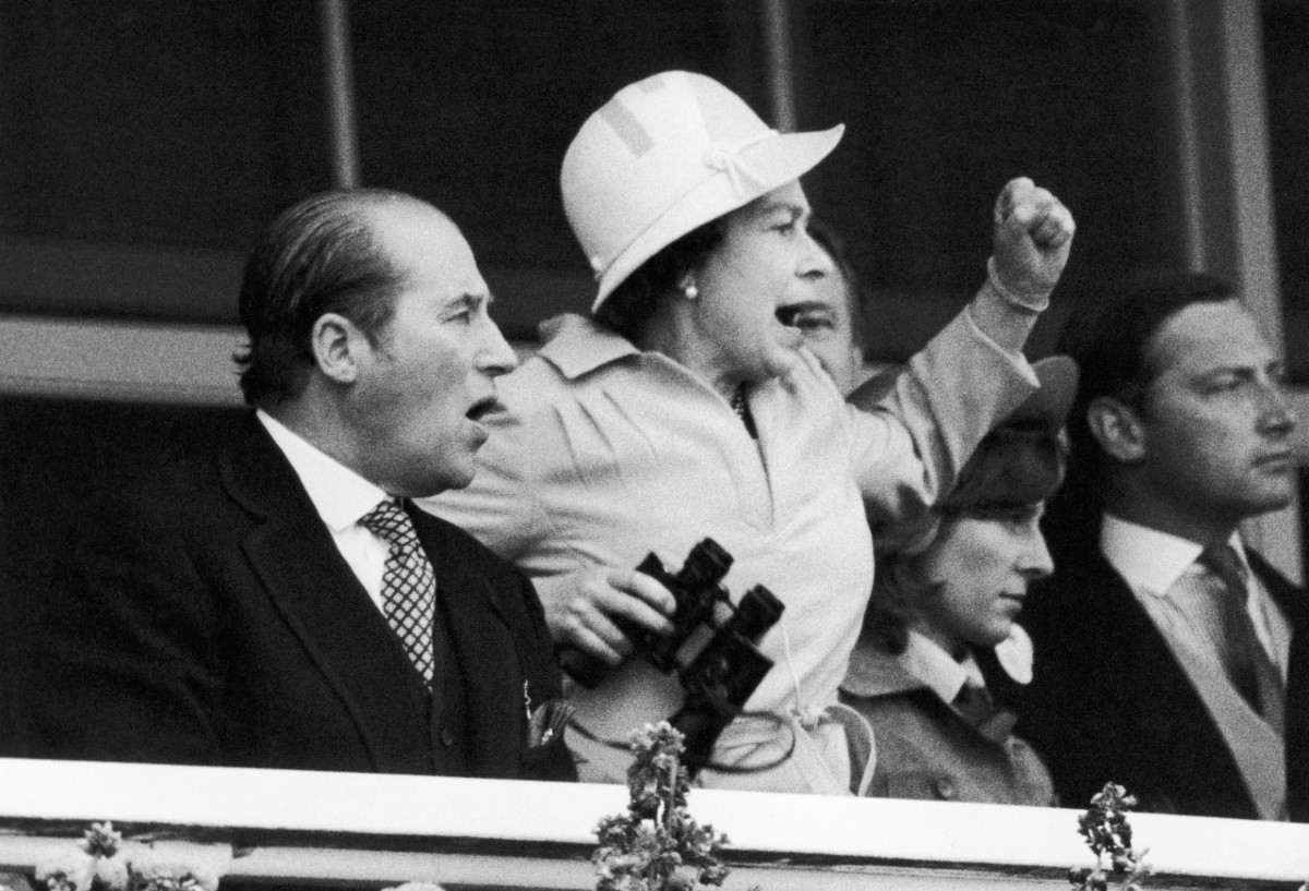 The Queen took a keen interest in horse-racing. Here, the Queen and her racing manager, Lord Porchester, watch the finish of the 1978 Epsom Derby.