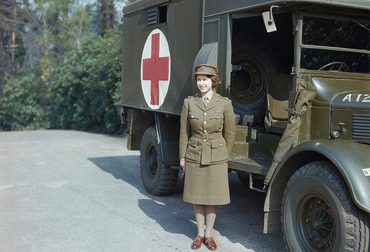 Then Princess Elizabeth in the Auxiliary Territorial Service uniform, April 1945