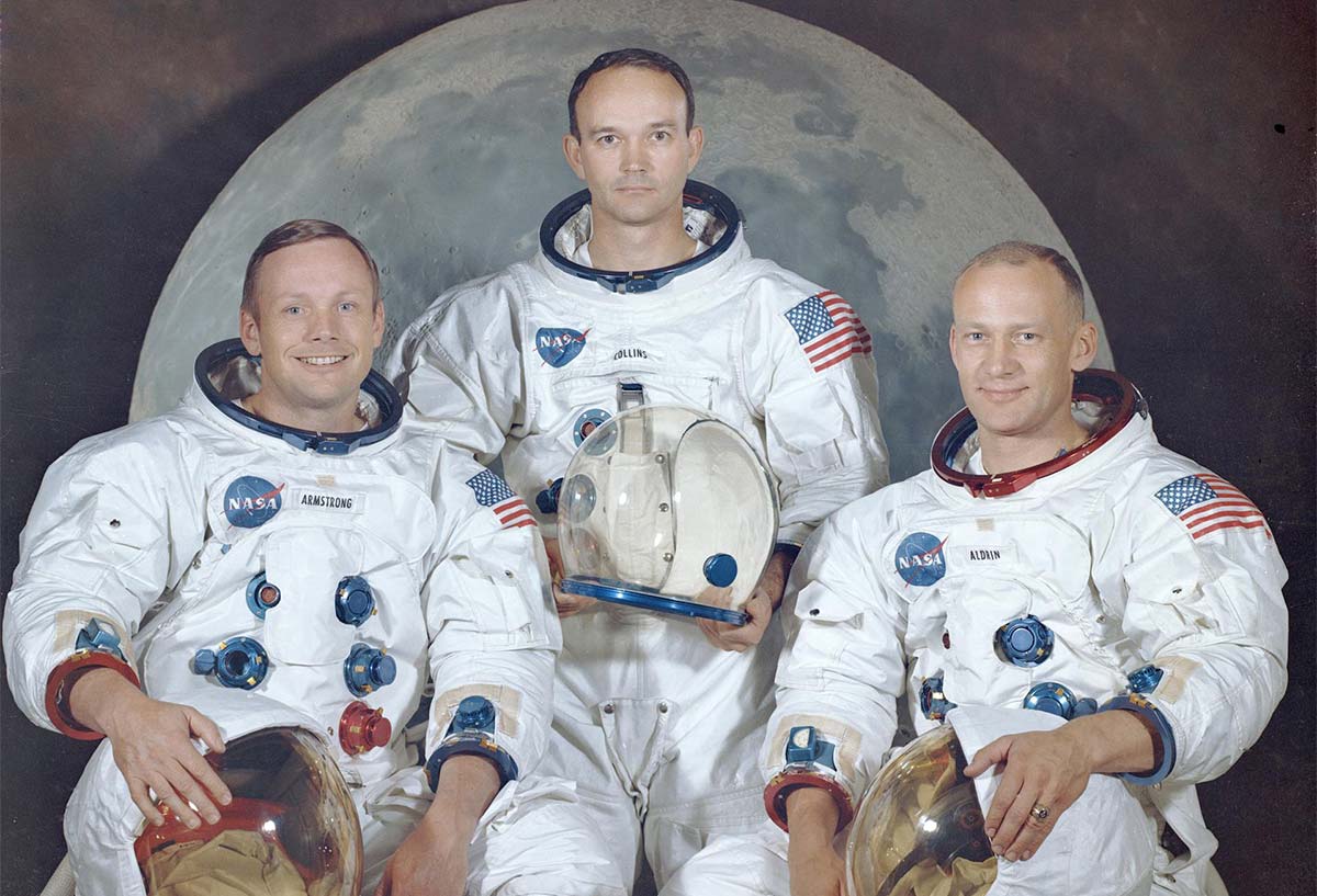 The official crew portrait of the Apollo 11 astronauts. Pictured from left to right are: Neil A. Armstrong, Commander; Michael Collins, Module Pilot; Edwin E. “Buzz” Aldrin, Lunar Module Pilot