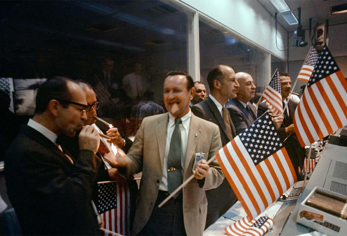 The Mission Control Center (MCC) celebrating the successful conclusion of the Apollo 11 lunar landing mission