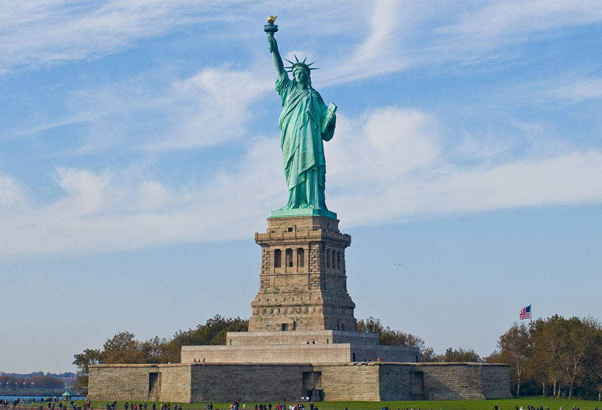The Statue of Liberty is undisputedly the most well-known statue in America. The copper structure was a gift from the people of France, depicting Libertas, a robed Roman liberty goddess. Work on it began in 1875, with the final parts being shipped to New York nine years later. The iconic green colour of ‘Lady Liberty’ came through the oxidation process of the copper, turning it from a dull brown colour to its now recognisable shade.