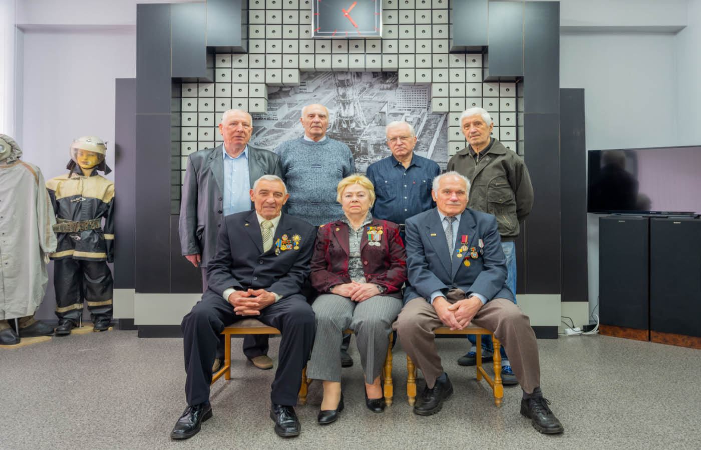 This photograph was taken at the Museum in Slavutych on the anniversary of the Chernobyl disaster. Each of the people worked to clean up the radioactive fall out and are collectively known as Liquidators.